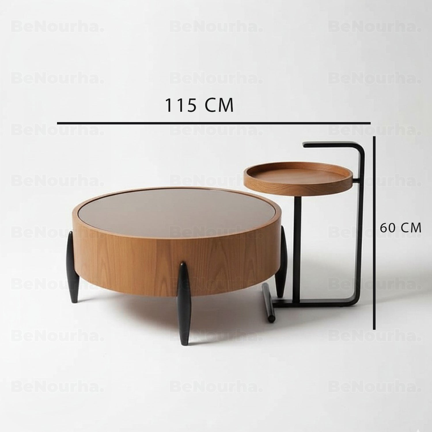 - تصميم دائري انسيابي مع قاعدة خشبية مميزة.