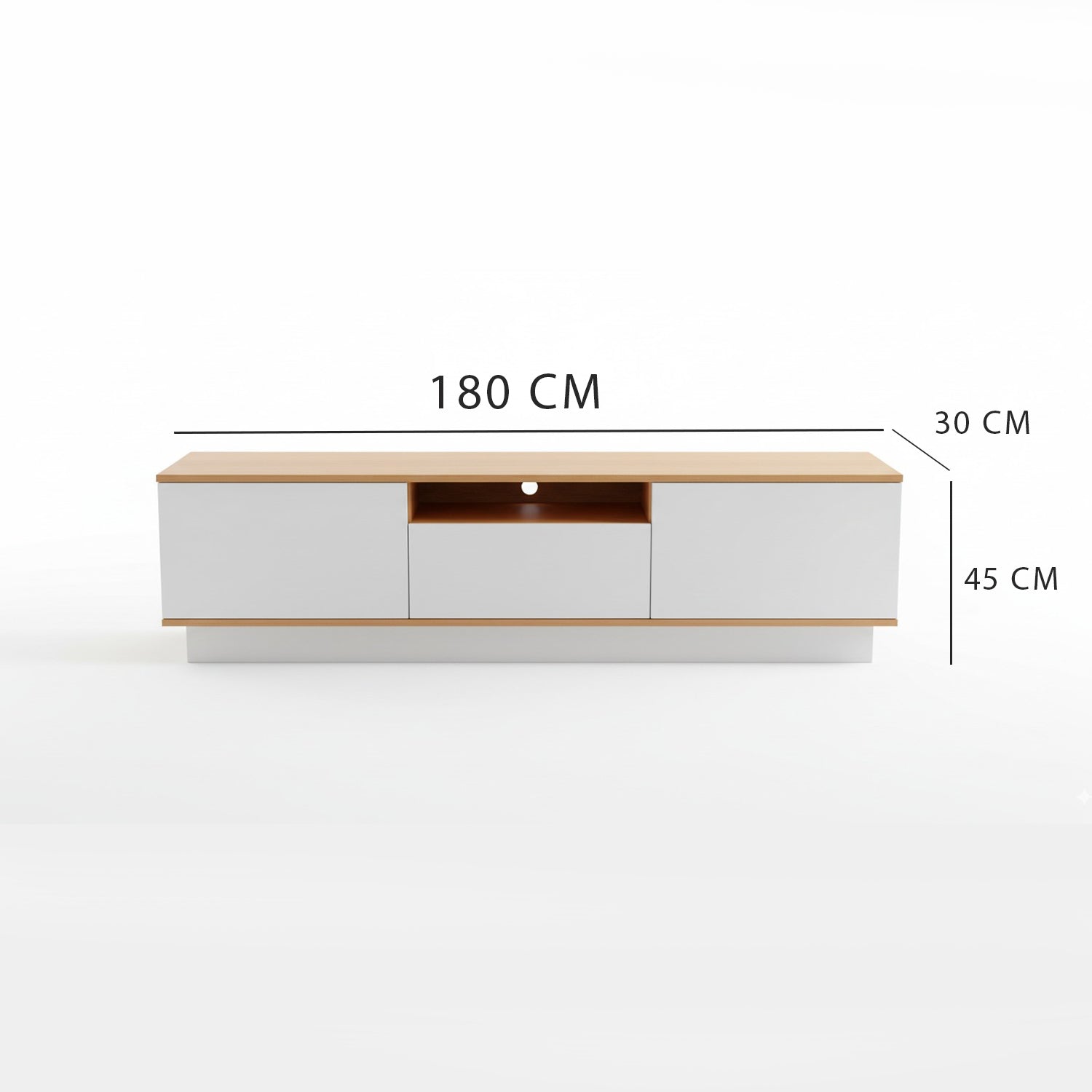 • أدراج مغلقة وأرفف مفتوحة لتنظيم الأجهزة والإكسسوارات بسهولة.
